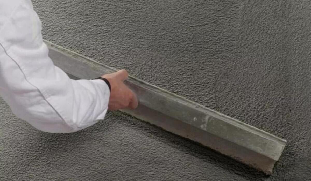 После завершения работы штробы от маячков заделываются тем же раствором, обеспечивая равномерное слияние с основным покрытием и предотвращая усадку.