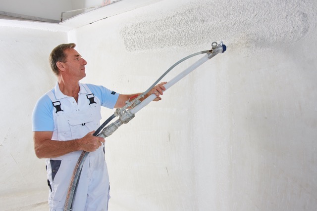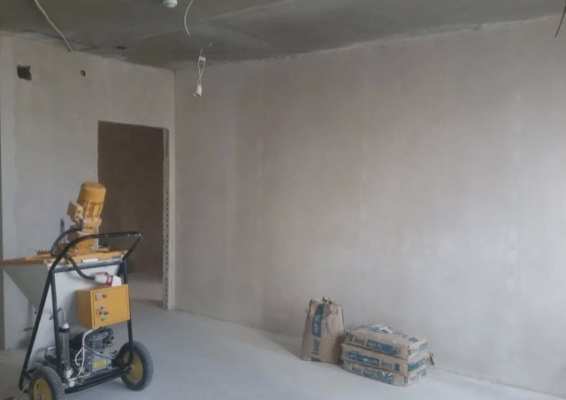 Автоматизированный процесс нанесения строительных растворов на стены и полы разнообразных помещений при помощи специального оборудования.